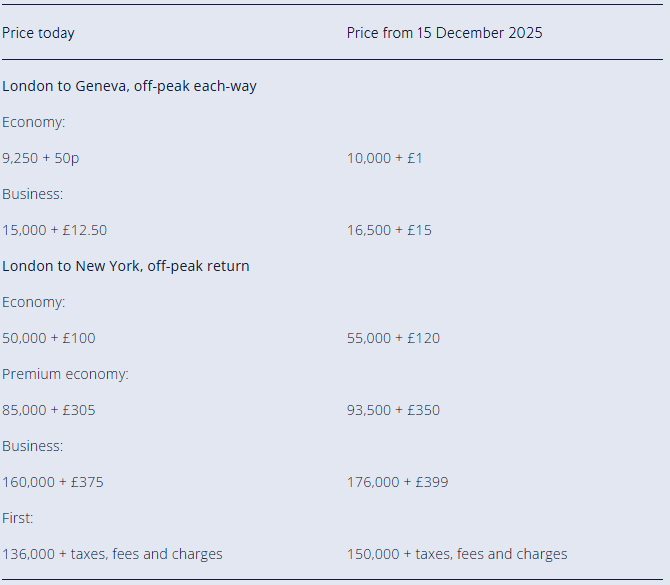 Effective 15 December 2025, British Airways will increase the pricing for all Reward Flights.